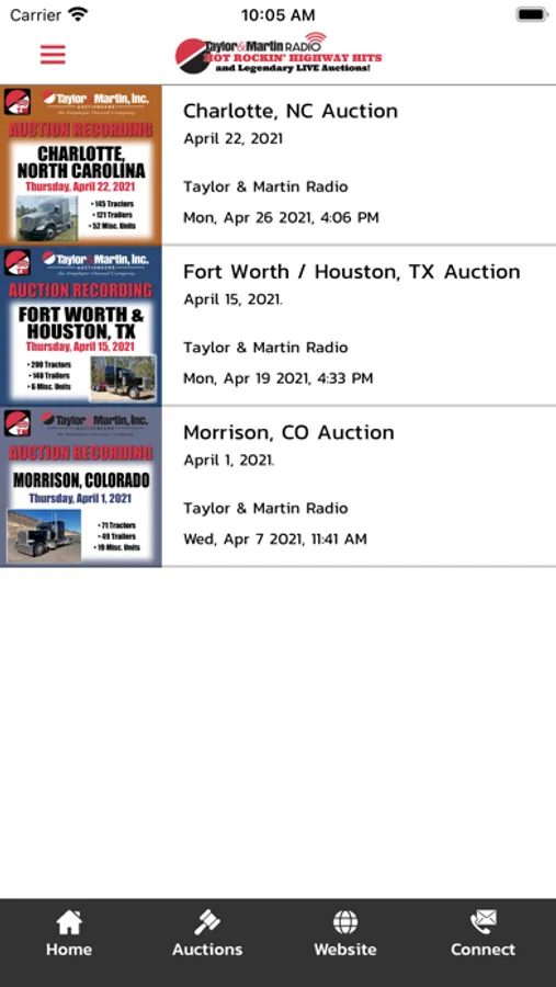 Taylor & Martin Radio is here for your listening pleasure as well as updates during our weekly talk show with auctioneers Tyler & BJ. Listen every week to the live auction as it’s in full swing. Search through and listen to some of our more recent past live auctions at any time to get a feel for the markets and the live auction process. Auctions run through tractors, miscellaneous and then trailers at each event.
