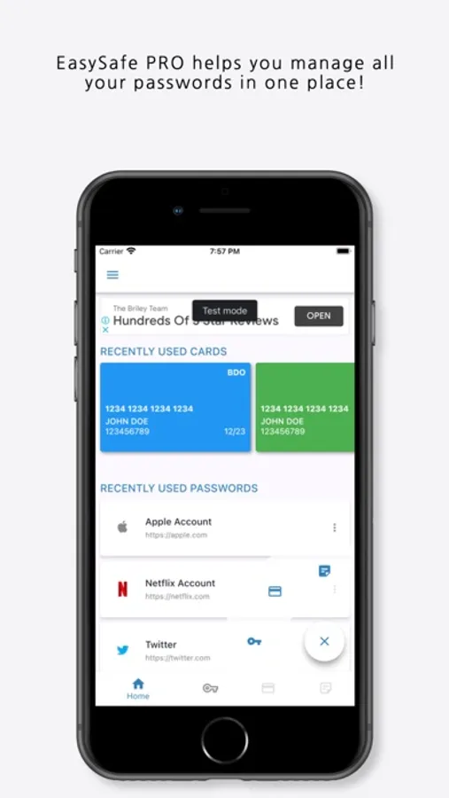 Tired of frequently forgetting multiple passwords from different accounts? EasySafe PRO helps you manage all your passwords in one place. Smart, simple and secure. Choose to create your own password or generate strong passwords with its built-in password generator. All equipped with advanced encryption to safeguard your account.