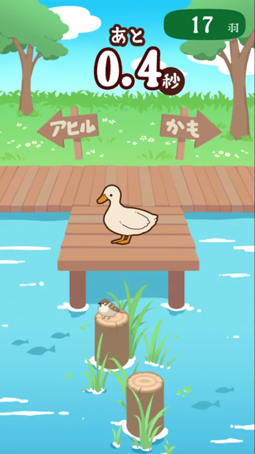 水辺に現れる鳥たちがアヒルなのかかもなのか、簡単フリック操作で仕分けてね。
