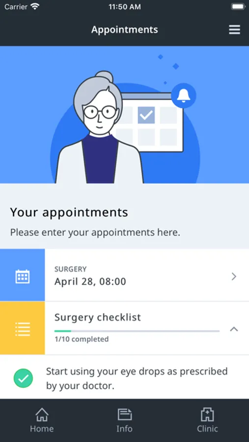 Checklists, an appointment tool and an eye drop reminder will assist you to smoothly undergo the treatment. Additionally, the app provides you with information from your clinic including details on treatment options and additional services provided so you would be able to make the best treatment decisions together with your doctor.