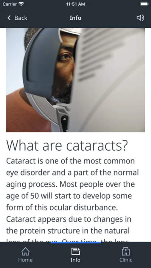 EYEGUIDE is a new app for cataract patients assisting them during the entire cataract treatment journey. In this app you will find helpful information about cataract and cataract surgery, as well as useful tools helping you to prepare for the cataract procedure and to optimally support the healing process.