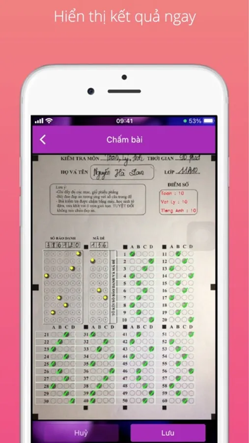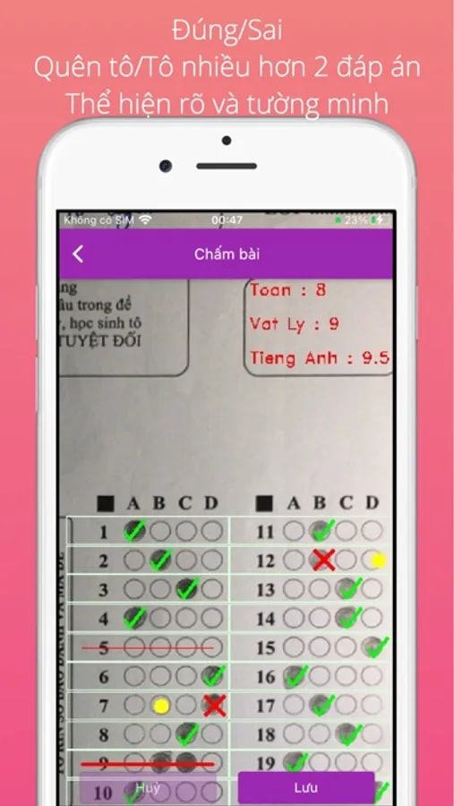 Tạm biệt cách đục lỗi lỗi thời và đến với cách chấm bài trắc nghiệm bằng điện thoại hoàn toàn Mới-Nhanh-Tin Cậy.
