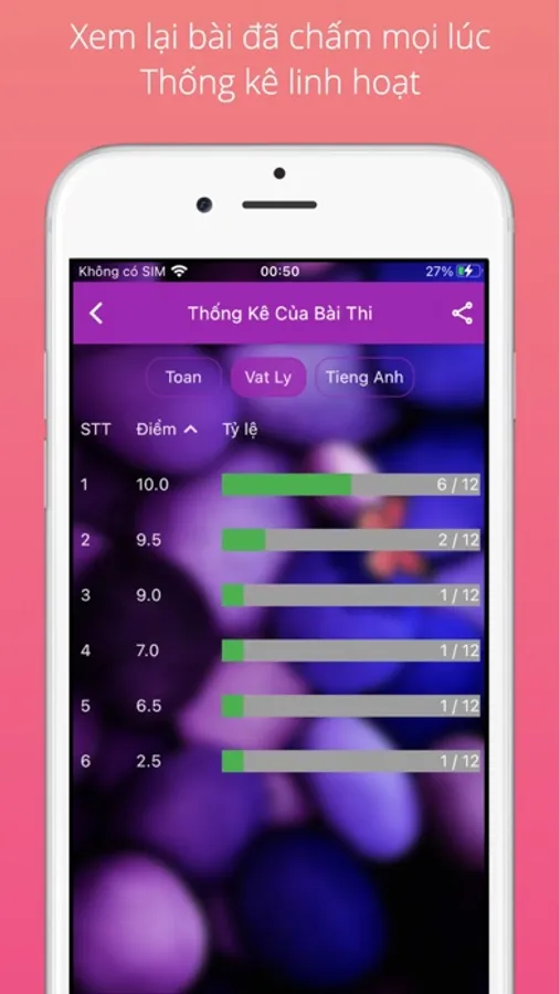 - Thống kê theo điểm hoặc phân bổ số lượng học sinh.