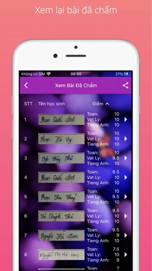 - Xem lại toàn bộ bài đã chấm, đúng sai tới từng câu hỏi.