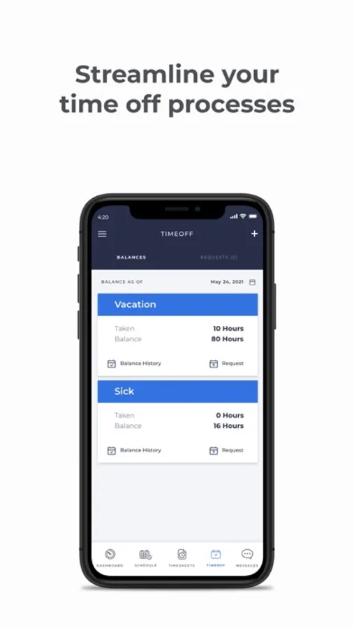 Enable your employees to quickly book time off from their mobile device or from the web. Managers can stay on top of employee availability by viewing requests in real-time and approving or rejecting requests.
