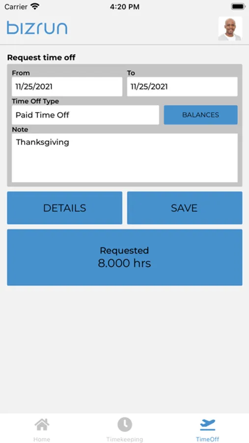 Time to rejoice. With time-off planning on your employee’s phone you can forget about spreadsheets and other manual methods of keeping track of vacations and sick days. BizRun provides up-to-date information on balances, upcoming requests, and past days off based on your defined PTO policy. Plus, the requester is automatically alerted if their request exceeds their accruals. Here’s more:
