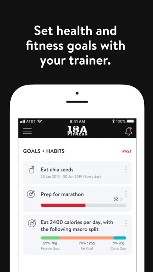 With the 18A Fitness App, you can start tracking your workouts and meals, measuring results, and achieving your fitness goals, all with the help of your personal trainer.
