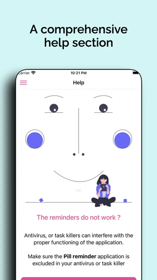 Antiviruses or task killers can interfere with the proper functioning of application reminders. In the event of a malfunction, we are not responsible for any forgetting of the contraceptive pill.