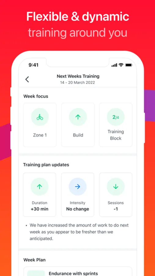 And it’s adaptive. So if you miss a session or two, then it will make adjustments in real-time, making sure you’re still on track.