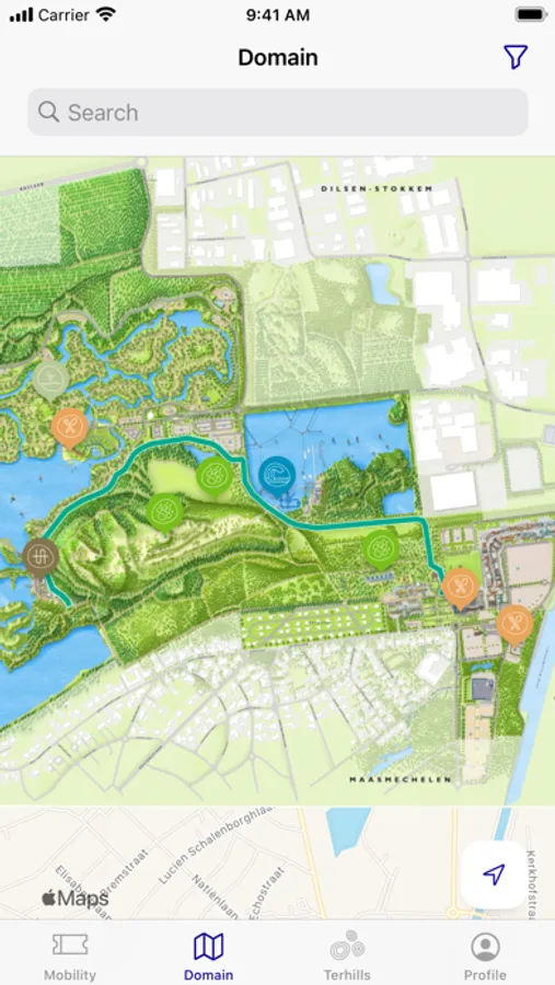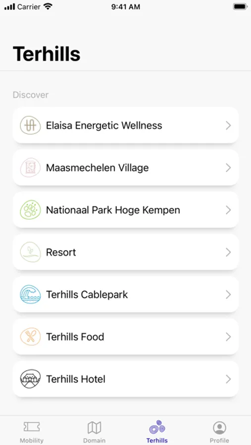 Discover Terhills with the Terhills app. In this app you can find more information about the different destinations such as Terhills Resort, Terhills Cablepark, Terhills Hotel, Terhills – Main Gateway to the National Park, Elaisa Wellness and Maasmechelen Village. You can use the Terhills app to discover the various mobility possibilities on the site, such as the electric shuttle bus. The app also keeps you informed of events taking place at Terhills. Purchases such as bus tickets, taxi rides or tickets for events can easily be made after registering your bank or credit card.