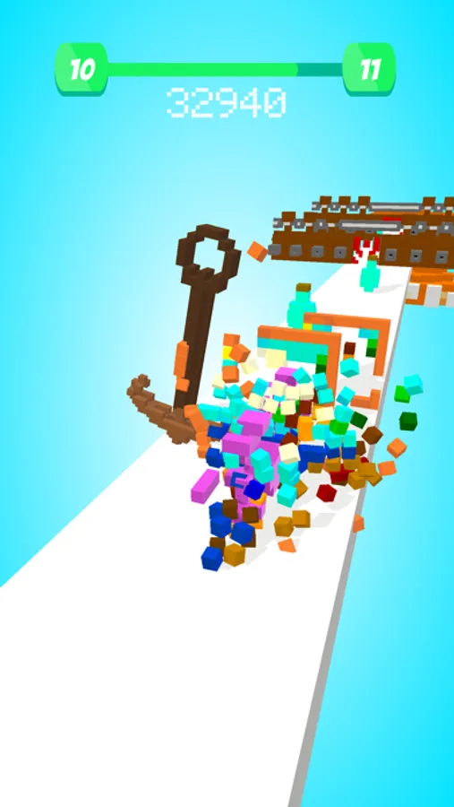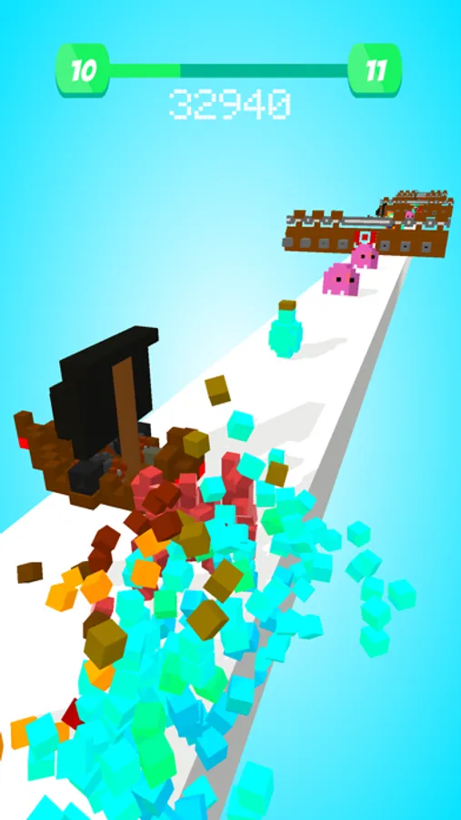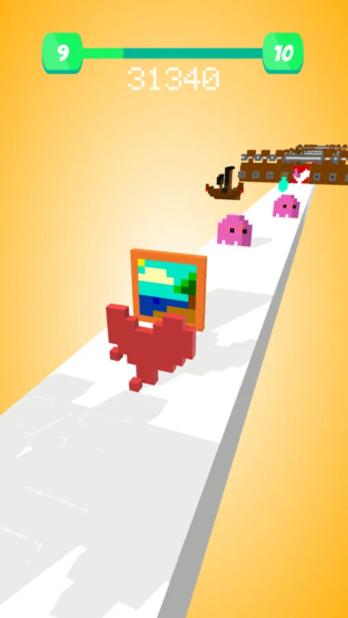 Collect colorful cubic shapes on the road to build a bigger objects.