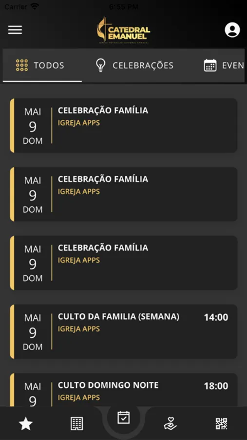 * Siga a agenda e fique por dentro de tudo que acontece na igreja, inscreva-se em eventos etc.