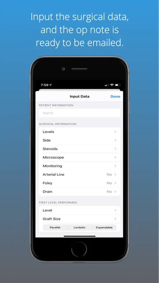 Neurosurgery Dictations is an easy to use app to create a surgery operative report template with variables to streamline dictations. Email yourself the report, then copy it into your chart. Delete the email when you are done. It acts as a to do list!