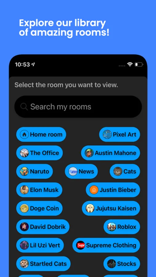 Explore the vast amount of rooms available, if you don't see one you want then add it for everyone to enjoy!