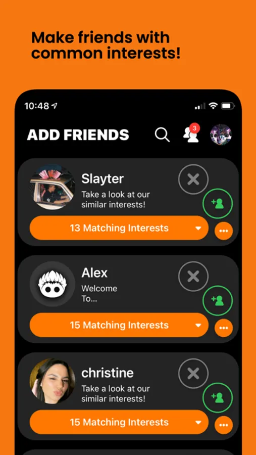 MyRoom will show you friends who have similar interests and topics. Easily view all the similar interests you have in common, then connect and discuss! The more in common, the more conversations to be had! ;)