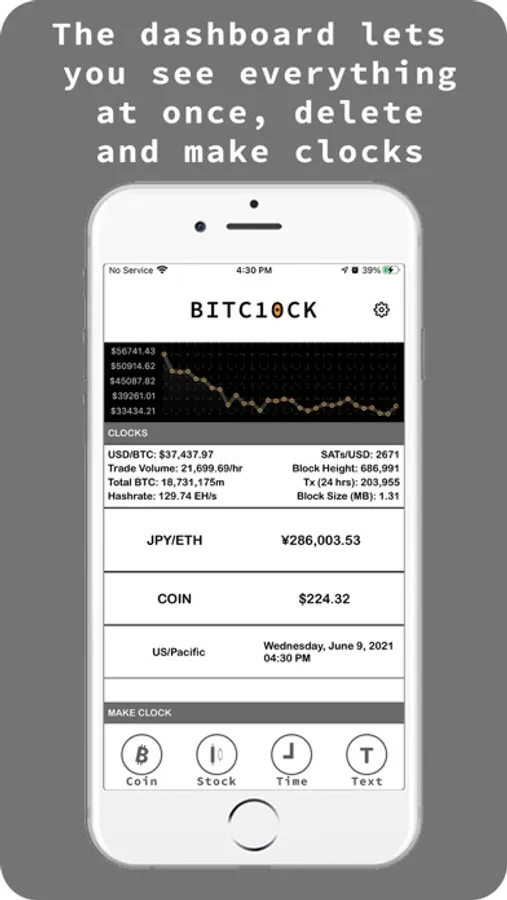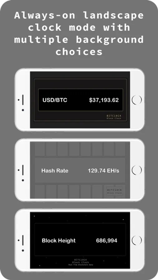 The Bitcoin Block Clock App turns your iPhone or iPad into a real time Bitcoin streaming clock for block clock info, lightning data, bitcoin news and more. Choose from different currencies, crypto currencies, block clock info, lightning stats, bitcoin news, Satoshi Nakamoto quotes, stock prices, date and time info to create your customized streamer of critical information. Add customized block clock widgets to always display your favorite information.