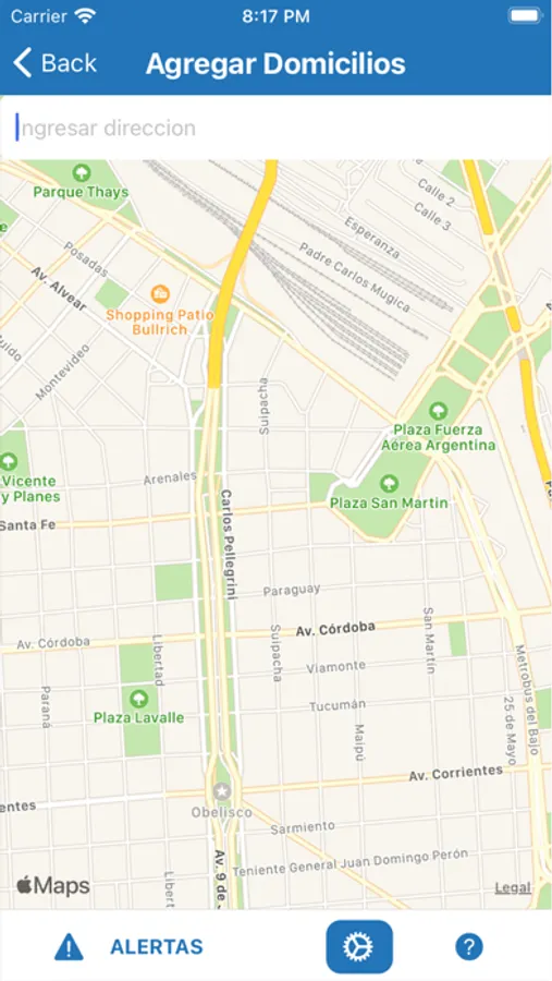 Envío de Alerta de Pánico Inmediata más la direccion declarada donde te encontras