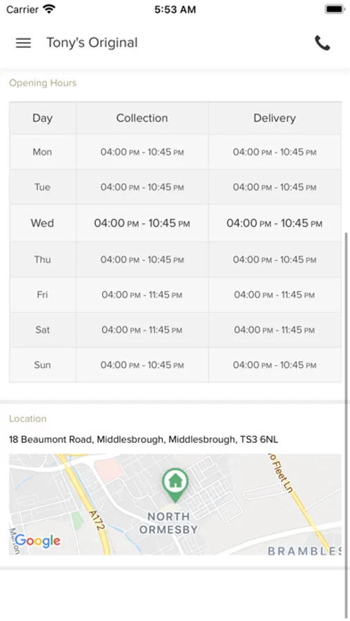 Order food online in Middlesbrough! It's so easy to use, fast and convenient. Try our new, online app which contains our entire takeaway menu. The Tonys Original is located in Middlesbrough.You can now order online, all your favourite dishes and many more delicious options, and have them delivered straight to your door in no time at all.