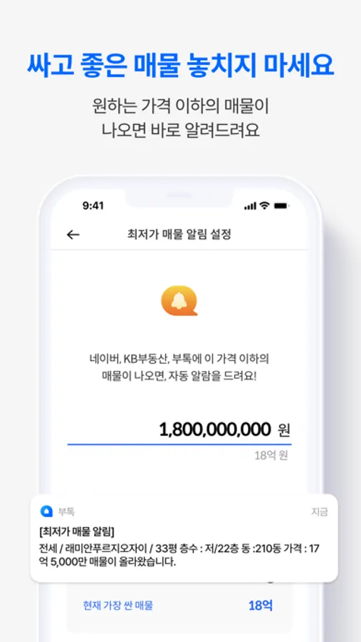 원하는 가격 이하의 매물이 나오면 바로 알려드립니다. 싸고 좋은 매물 놓치지 마세요.