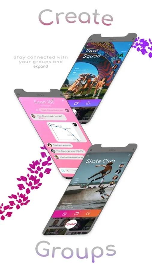 Groups - To make the most out of quad, create and manage groups. Create class groups, stay up to date with your classes, and discover more about your classmates!