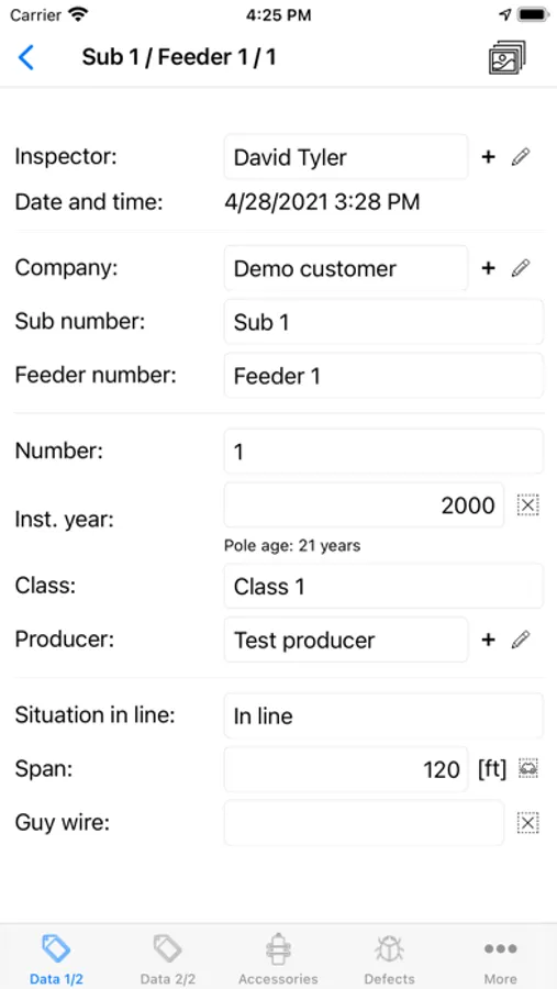 The software provides base functionalities to collect data about inspections of overhead lines.