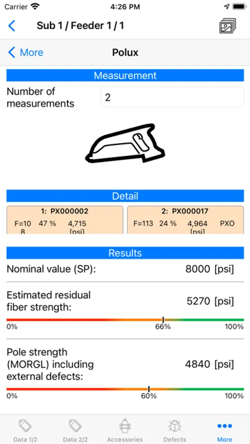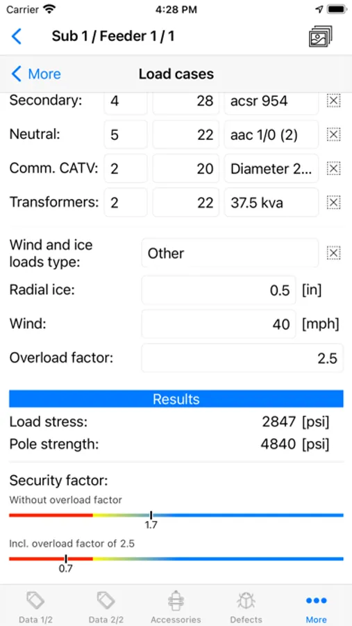 The application also integrates a load calculation system and makes it possible to compare load stress to pole strength estimated by Polux®