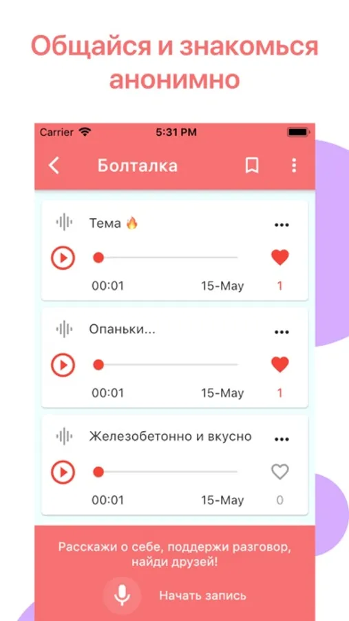 Здесь каждый может анонимно записать свои аудио-подкасты и слушать другие записи в режиме реального времени буквально в один клик без регистрации.