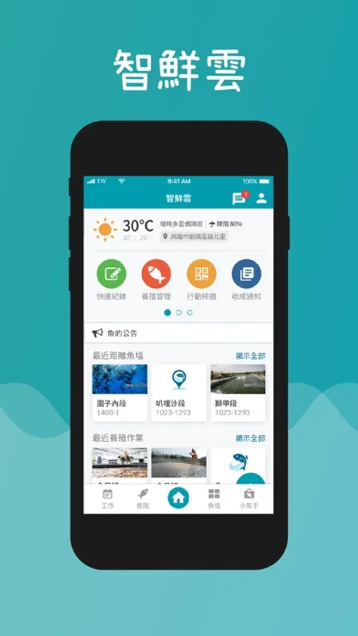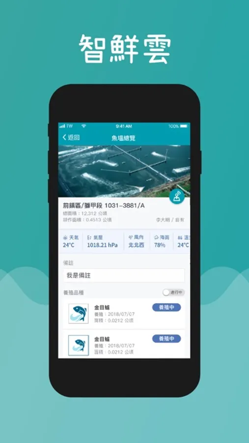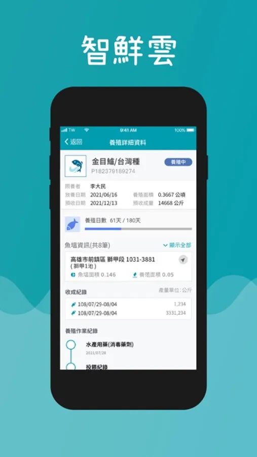 智鮮雲是一套智慧水產養殖管理資訊系統,整合運用ICT與IoT,協助業者進行水產養殖管理,以供應適時、適量、適質的溯源安心農產品。