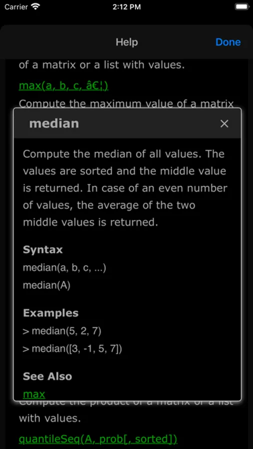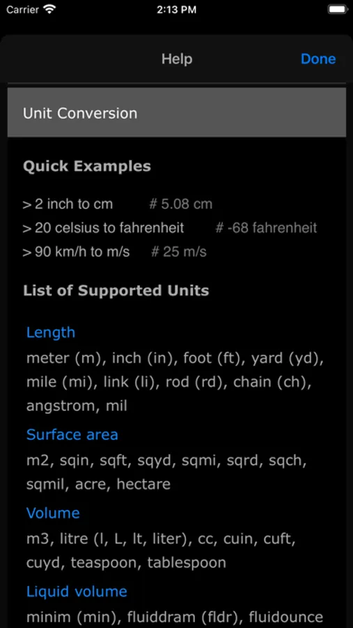 The app also comes with a comprehensive in-built help system with plenty of examples. CLCalculator is powered by math.js (https://mathjs.org/)