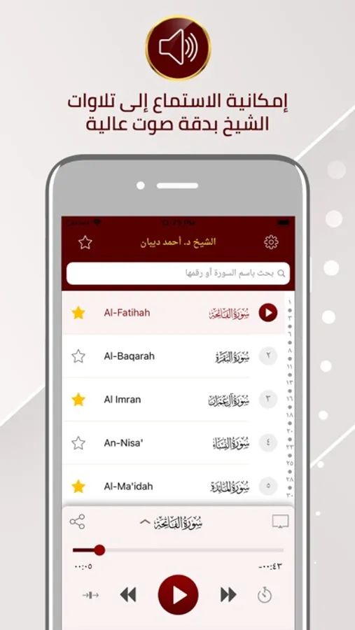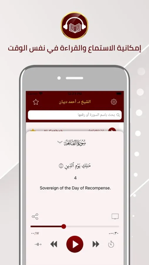 - إمكانية الاستماع وقراءة نص الآيات في نفس الوقت.