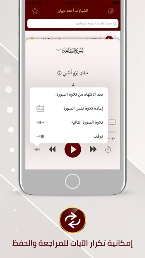 - إمكانية تكرار الآيات للمراجعة والحفظ.