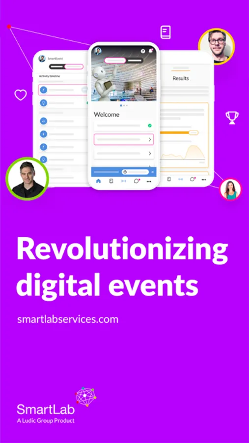 SmartLab App is a companion tool for hybrid and online programmes and events, giving participants instant access to agendas, resources, livestreams, collaboration, community features, and second screen experiences.