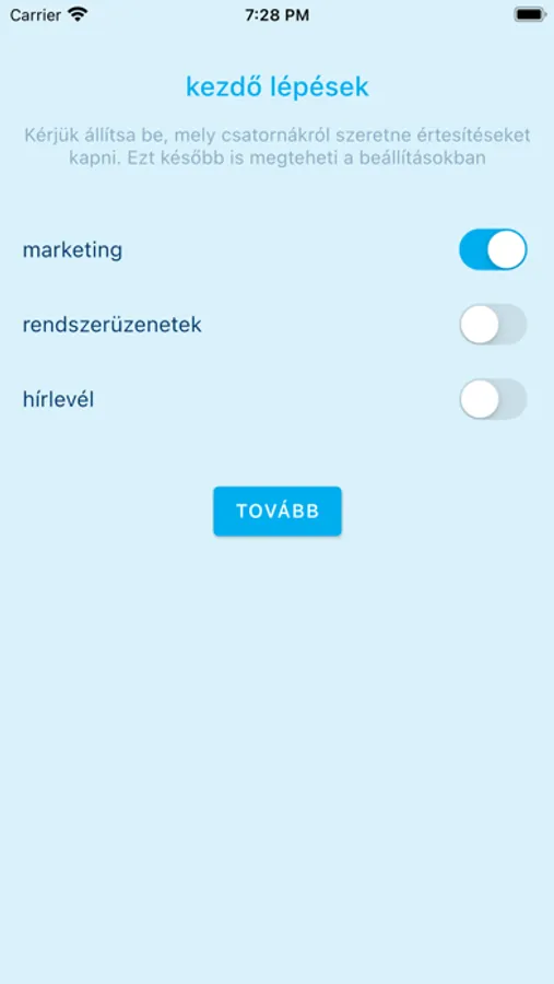 telefonra érkező értesítések (push notification) funkció