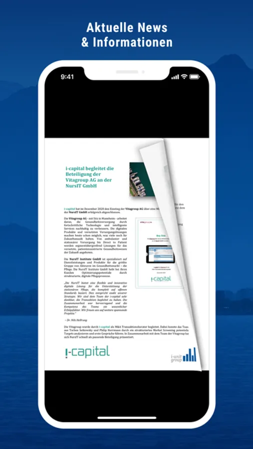 Darüber hinaus können Sie durch die vollständig digitalisierten Prozesse der i-unit group Kontakt zu Ihren individuellen Ansprechpartnern aufnehmen. Als Interessent oder Kunde der i-unit group erhalten Sie Ihre persönlichen Zugangsmöglichkeiten zu Ihrem spezifischen Unternehmensbereich in der App. Unsere Berater liefern Ihnen regelmäßig passgenaue und aktuelle Informationen zu beispielsweise Fördermöglichkeiten oder Branchennews Ihres Unternehmens.