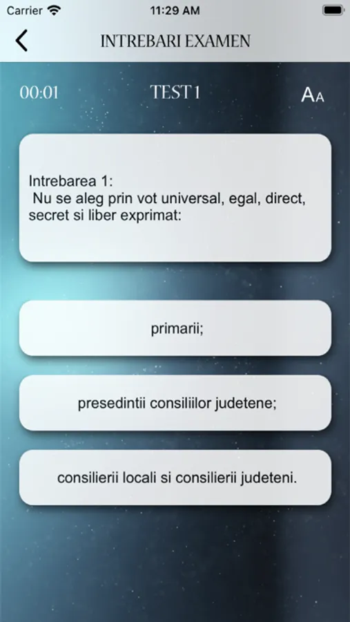 Aceasta aplicaţie este complexa dar usoir de folosir. Aceasta aplicaţie este complexa dar usor de folosit. Sectiunea de setari permite marirea fontului, pentru persoanele cu probleme de vedere si tine cont de cat timp petreci recapituland.