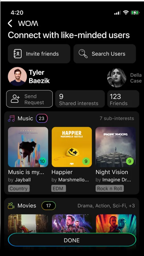 WOM is a social media platform that aims at digitalizing Word Of Mouth. WOM enables you to discover the world through the eyes of the people you trust and have access to the most trustworthy recommendation in the world. Our goal is to ensure that you can benefit from the positive moments your peers experienced. WOM centralizes all your interest on the same platform so you can easily be connected with the people you care about. Whether is it music, movies, traveling, restaurants, books, sports... WOM allows you to have access to all your interest in one centralized place so you don't miss a thing! Our vision is to be the most trusted, interactive, and impactful sharing platform on the market by providing tailored and truthful recommendations, strengthening meaningful, and long-lasting bonds with people you know, or creating new relationships with like-minded people. Lastly, WOM aims at being the most impactful platform for you by becoming your favorite place to discover the world and for the world by placing our users at the center of everything we do.