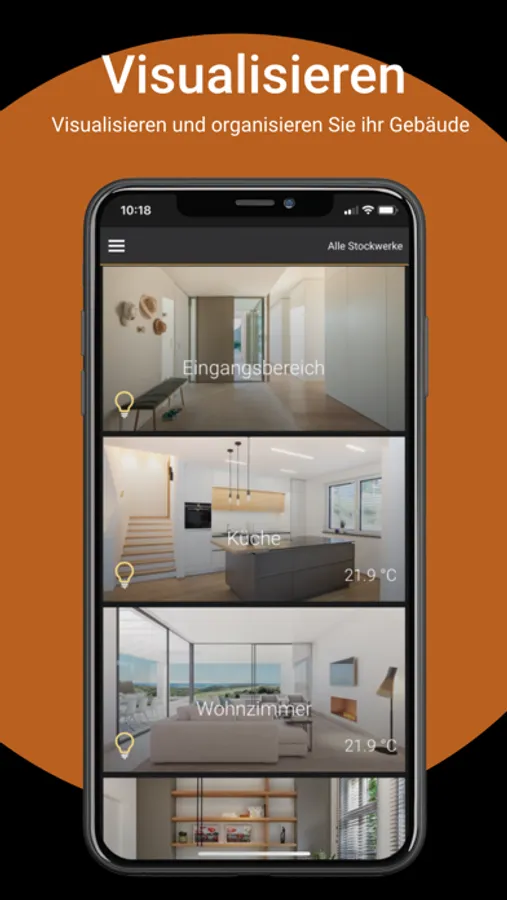 Strukturieren Sie Ihr Gebäude und gestalten Sie die App mit Ihren eigenen Räumen, um immer und überall einen schönen Überblick zu behalten.