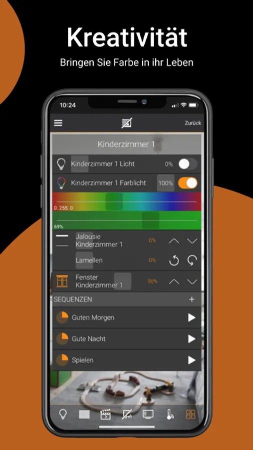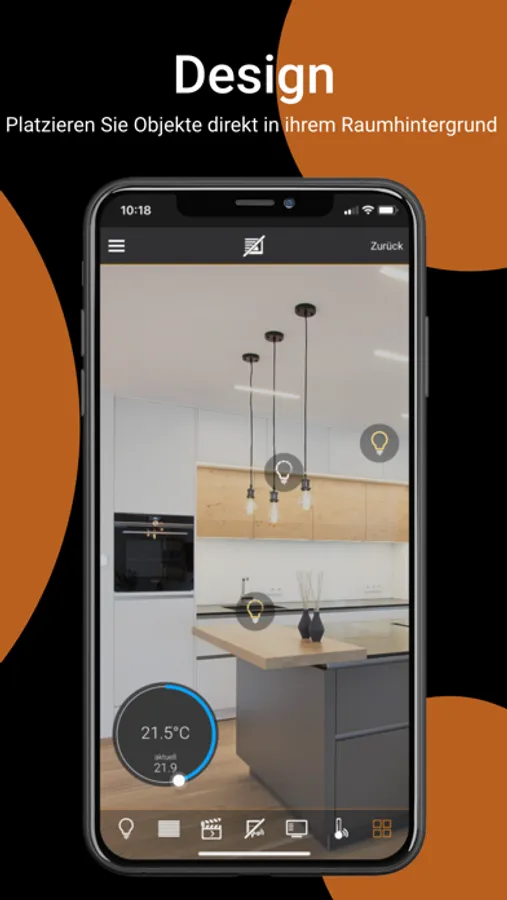 Alle schaltbaren Objekte können Sie direkt in Ihrem Raum platzieren und von dort aus schalten.