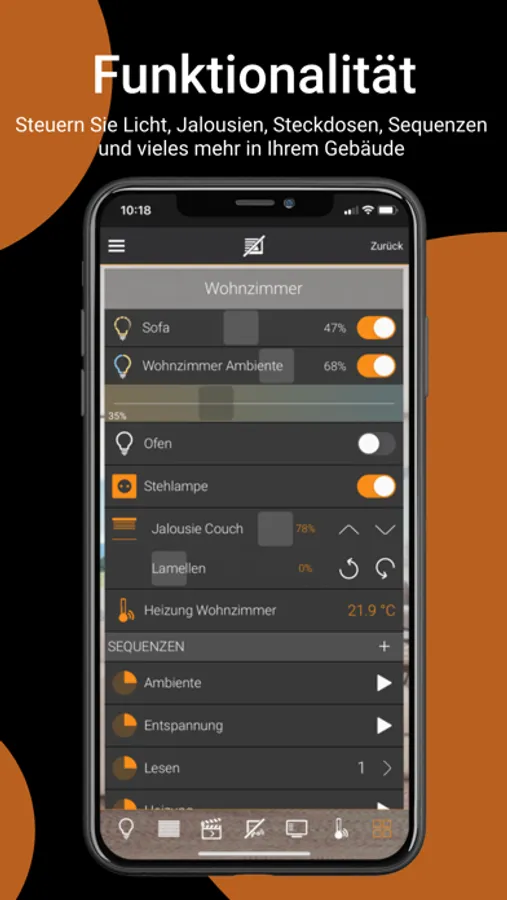 Steuern Sie Licht, Jalousien, Steckdosen, Sequenzen und vieles mehr in Ihrem Gebäude.