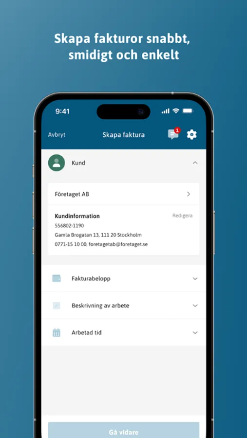 Genom notifikationer i appen är du alltid uppdaterad och kan följa statusen på dina fakturor och utbetalningar.