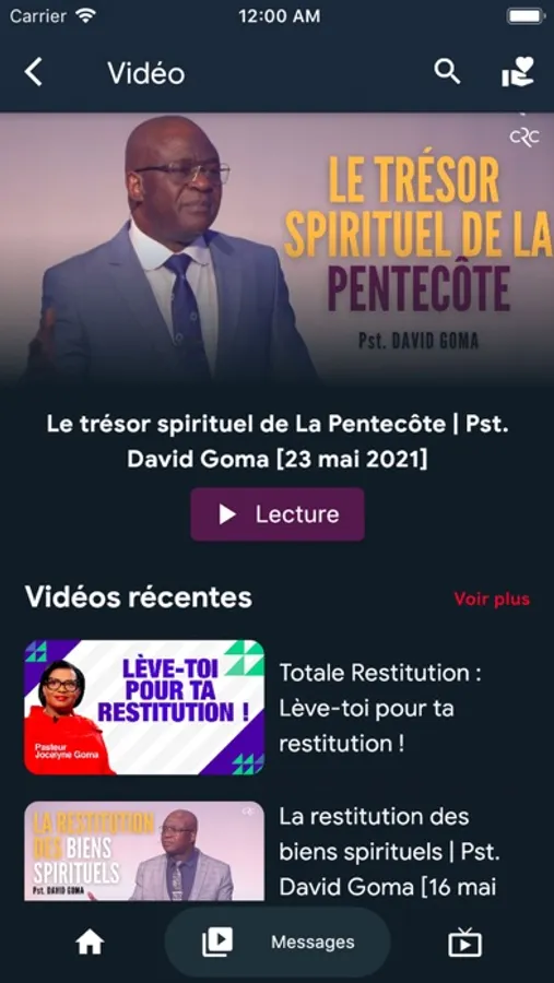 Sur celle-ci, vous retrouverez les messages des pasteurs David et Jocelyne GOMA.