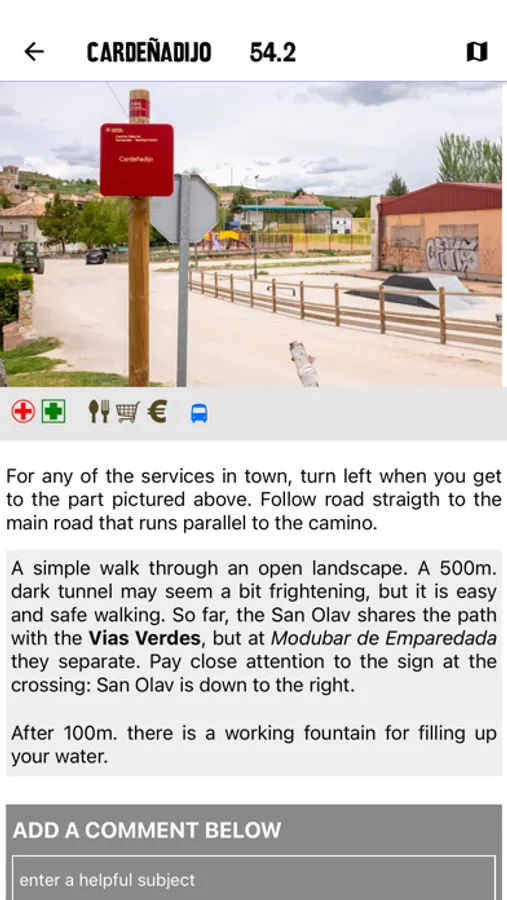 It includes offline maps, camino variants, lodging and sightseeing suggestions, and offline mapping capabilities. It also included the ability for you to leave your own suggestions for pilgrims following behind you.