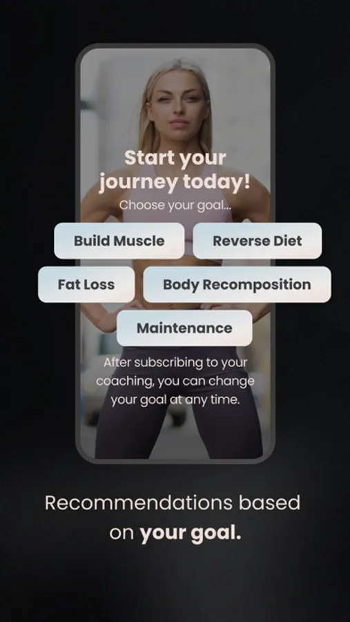 • Choose your goal: fat loss, building muscle / boosting your metabolism or maintaining your current weight