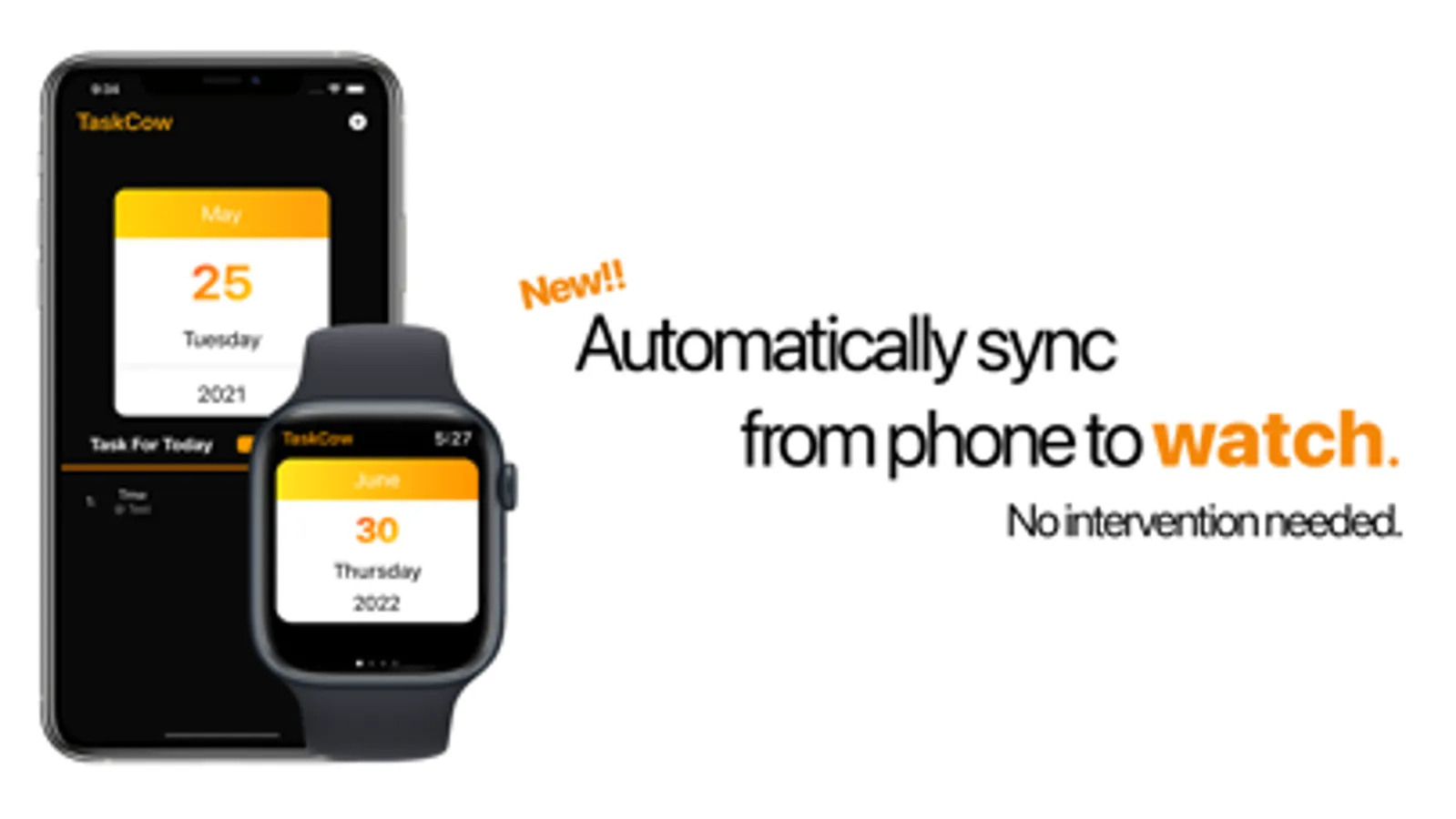 - No intervention needed, whatever you do on TaskCow will be reflected on the watch automatically.