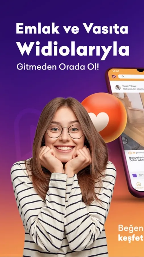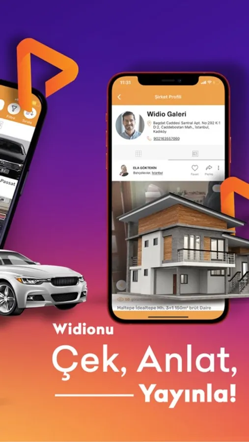 Emlak, vasıta ve bu kategorilere ait birçok videolu ilan Widio uygulamasında.