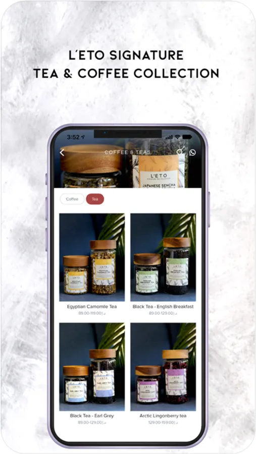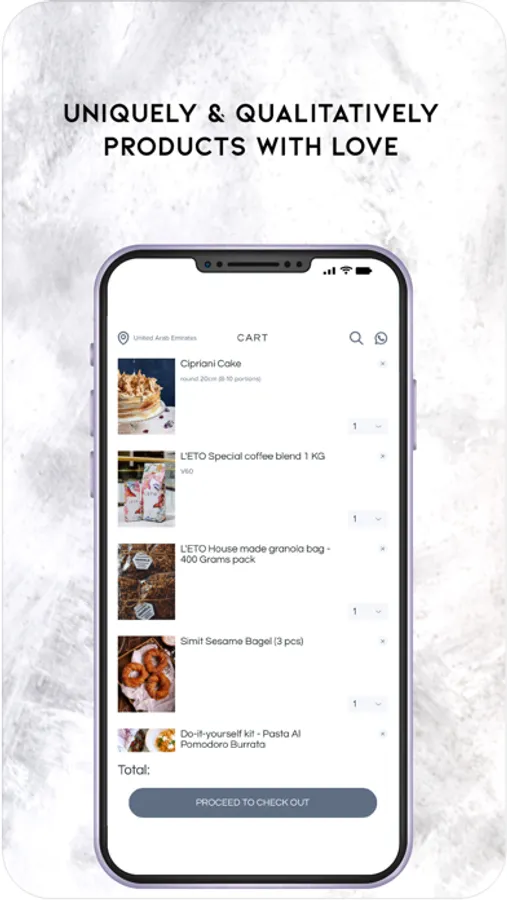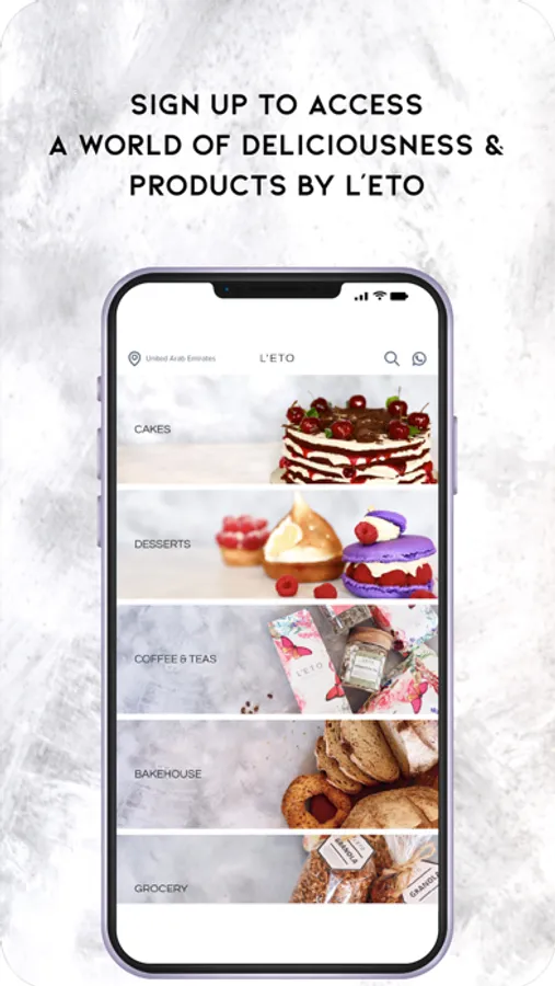 Exclusive L’ETO desserts and special occasion cakes, coffee blend, specialty teas, home-made bakery, granola, jams, cookies, chocolate, candies, and bespoke crockery available online in the app carry L’ETO idea of quality and summer emotions.