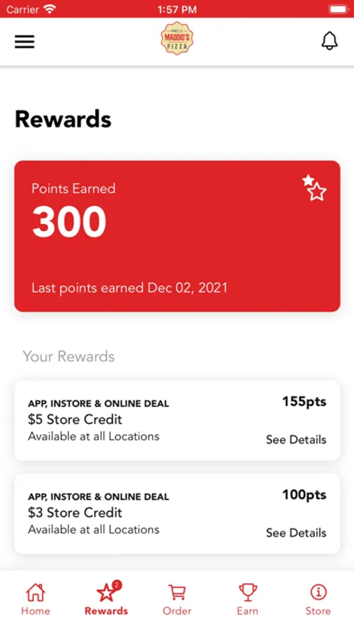 Uncle Maddios Pizza App - Earn and track your rewards at participating stores