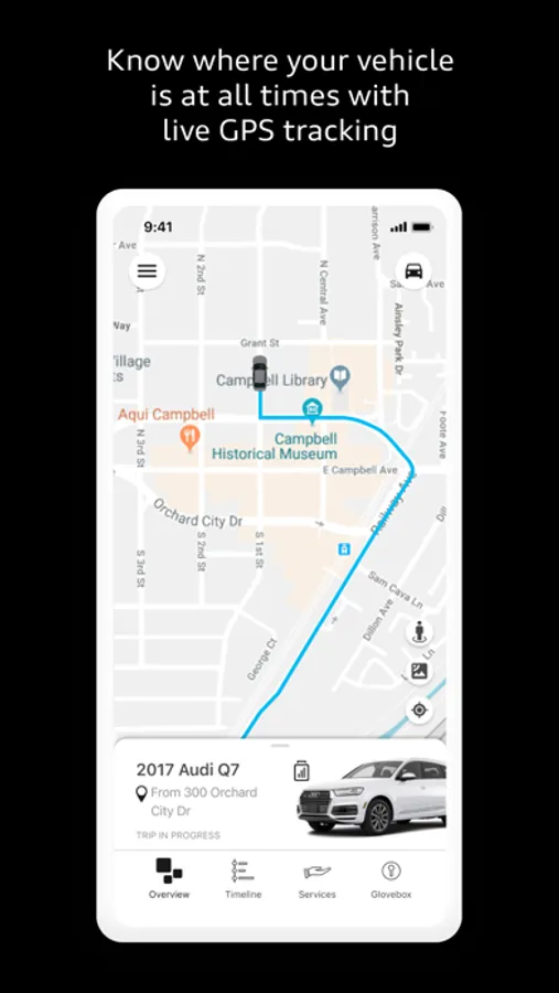 If your vehicle is stolen, you can report this to an authorized Audi representative via the app. Audi will work with local law enforcement to help track, locate and recover your vehicle.