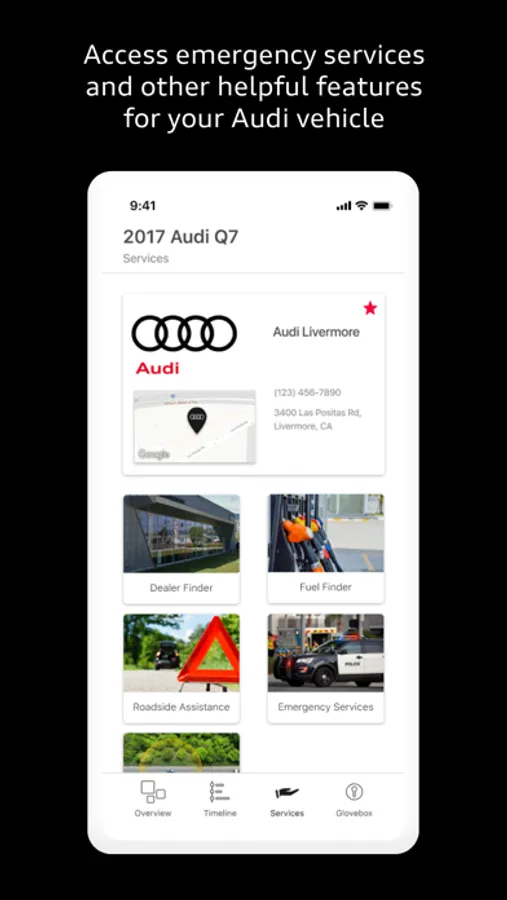Peace of mind comes with an SOS feature to help you make emergency calls via the Motion for Audi connect app