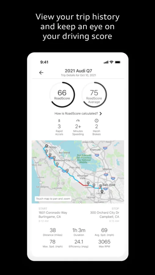 Get an easy-to-understand driving score for each trip. Increasing your score can help improve fuel economy and reduce wear and tear.